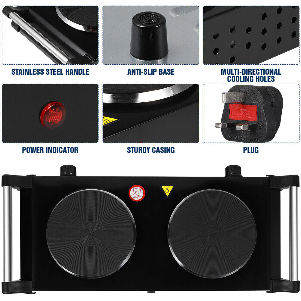 2000W Portable Electric Double Burner – Dual Hob Hot Plate with Stay-Cool Handles